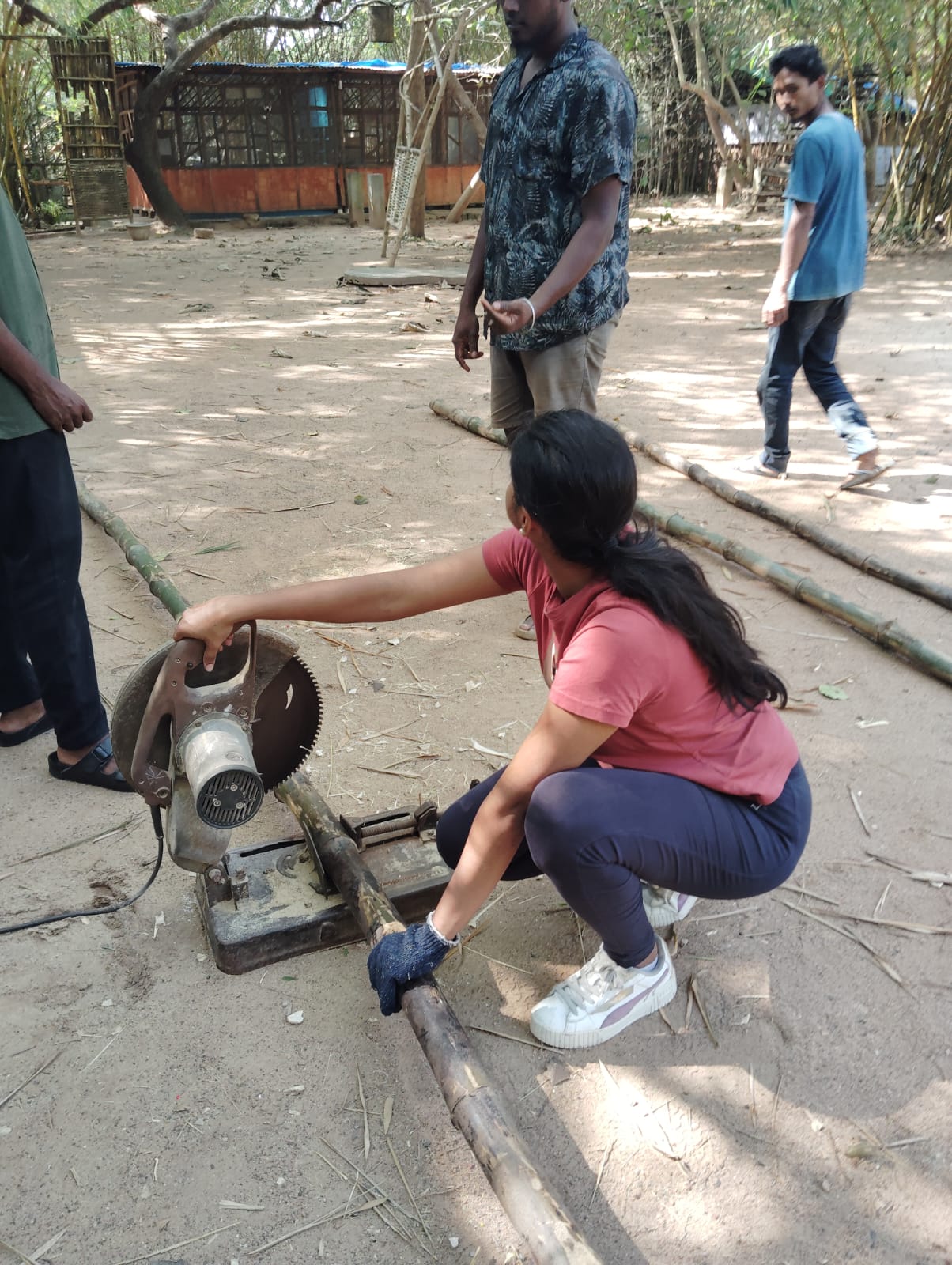 The workshop focused on learning through hands-on engagement—cutting, joining, testing, and observing bamboo as a living material. Rather than rushing to finish, participants slowed down to understand material behaviour, structural logic, and the quiet discipline required to build well.